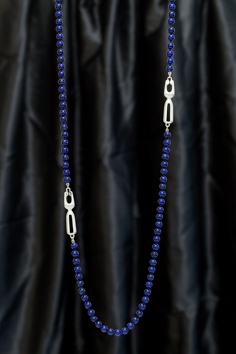 שרשרת עם שני תיליונים העשויים מכסף סטרלינג עם אבני לאפיס, אורך שרשרת 80 ס"מ